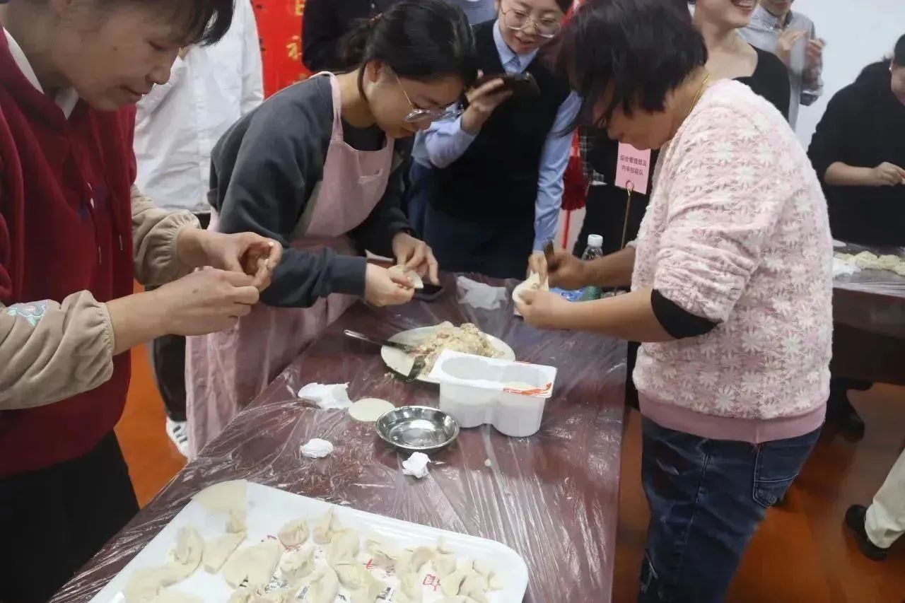 领导们带头示范,职工们也热情高涨,积极动手包饺子。会包饺子的手上动作不停,还不时教别人两招包饺子的“独门秘技”。不会包饺子的也跃跃欲试,有样学样,现场充满了欢声笑语和融融暖意。