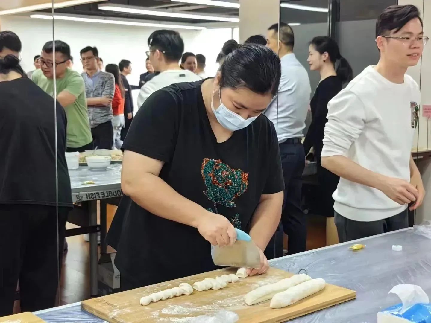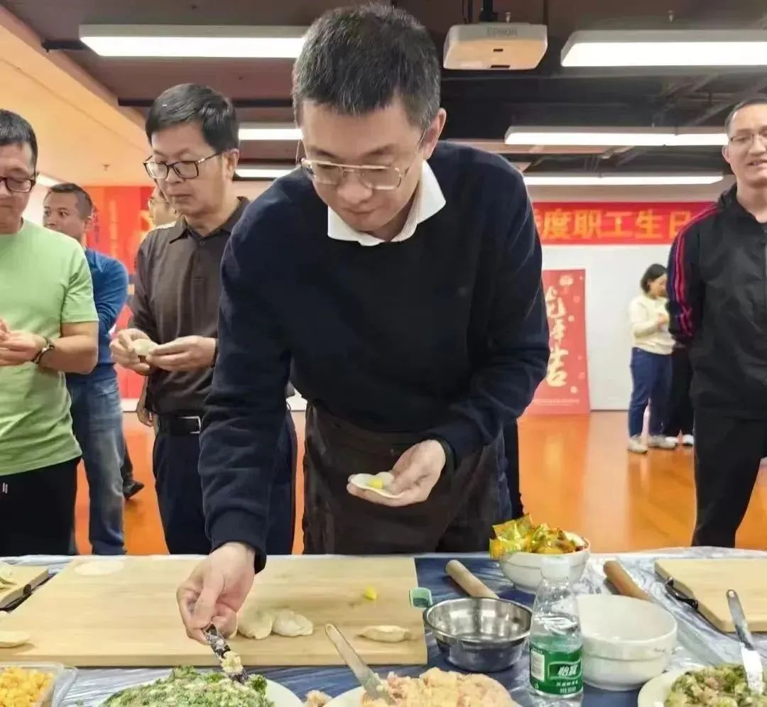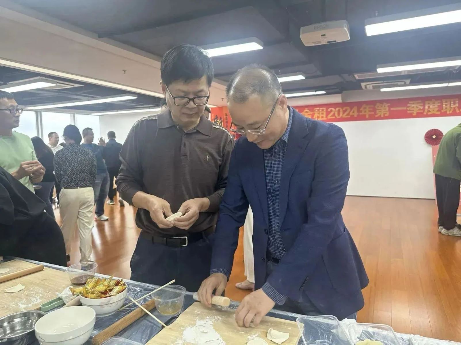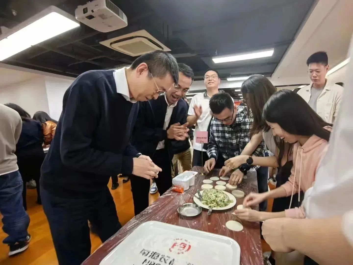 公司班子领导与一季度寿星们一同分享了切蛋糕的喜悦时刻,随后,肖光董事长与公司班子领导一起向职工们示范包饺子。肖光董事长一边挽起衣袖包饺子,一边与海晟职工们展开亲切的交流与分享,“如果吃到有硬币的饺子代表恭喜发财,吃到苹果馅儿的饺子代表平平安安,吃到糖果馅儿的饺子代表生活甜蜜”生动的讲解,让不少职工对北方年俗的美好寓意有了更深了解,包饺子也成了许下新年愿望的美好经历。