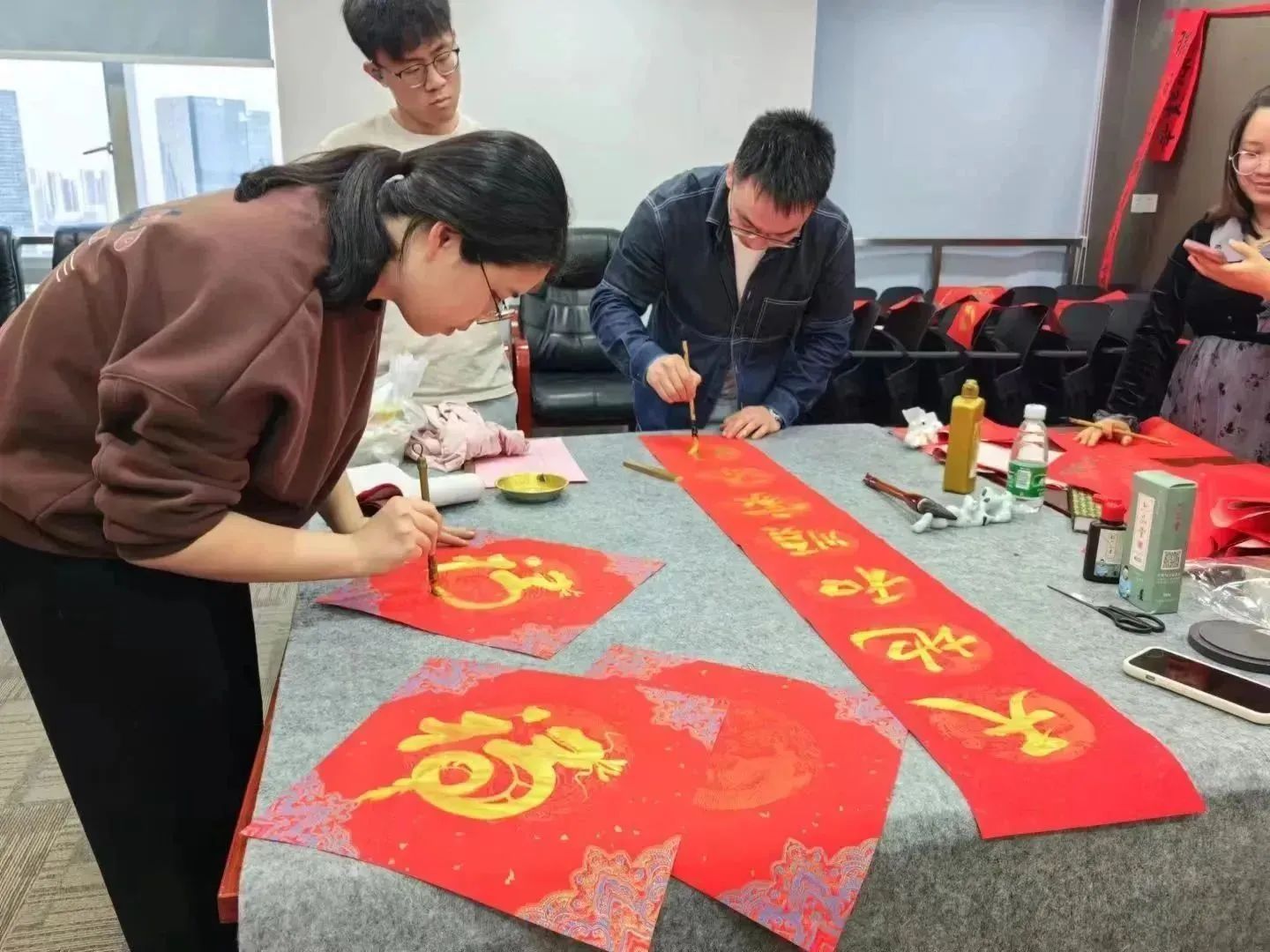 职工们参加了紧张欢乐的包饺子比赛,一起品尝美味饺子,多才多艺的员工送上青春洋溢的“科目三”快闪表演,书法爱好者即席挥毫书写春联……全场热情点燃,年味浓浓,海晟人朝气蓬勃、团结协作!