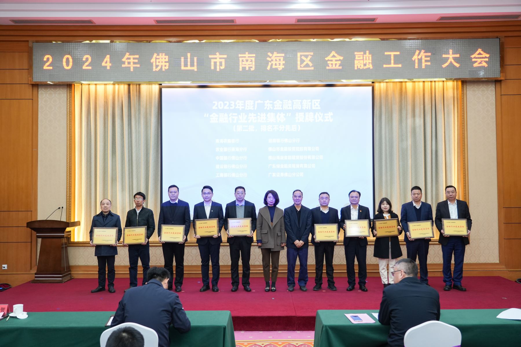 2月29日,海晟金租总裁曾剑涛获邀参加2024年佛山市南海区金融工作大会。会议现场对2023年为南海区经济发展作出贡献与支持的金融机构进行表彰,曾剑涛总裁代表海晟金租领取“2023年度广东金融高新区金融行业先进集体”牌匾。