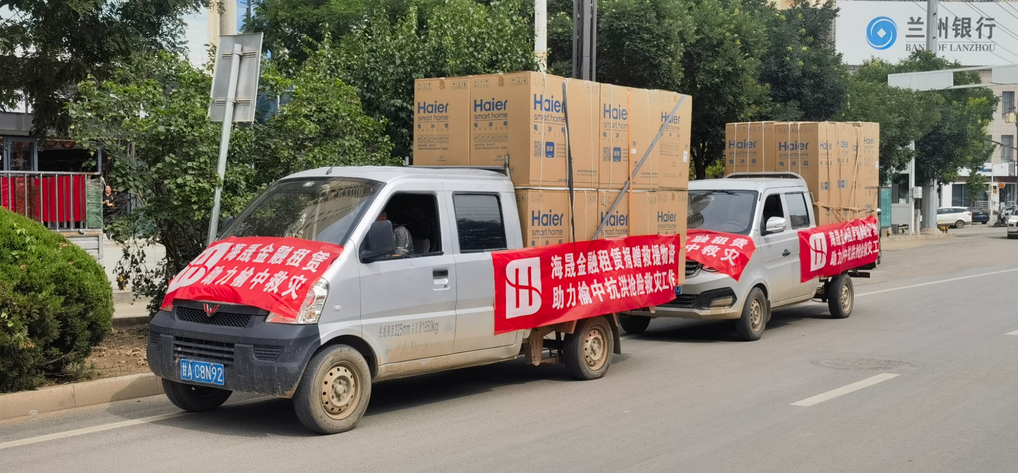 八月的佛山,台风接连过境。8月15日傍晚,暴雨肆虐,下班晚高峰的车龙亮起一路红灯。佛山海晟金租综合管理部的负责人还在办公室,话语急促,在电话中与远在1700多公里之外的兰州市榆中县的联系人沟通救灾重建物资运输前的有关事宜。
