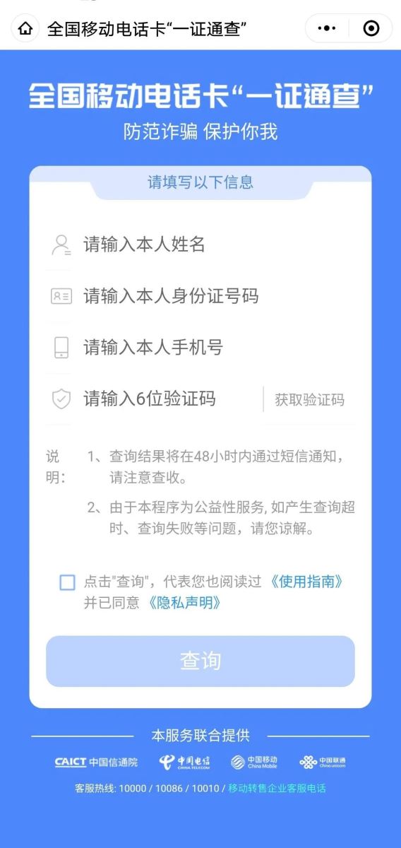 选中“电话卡一证通查”