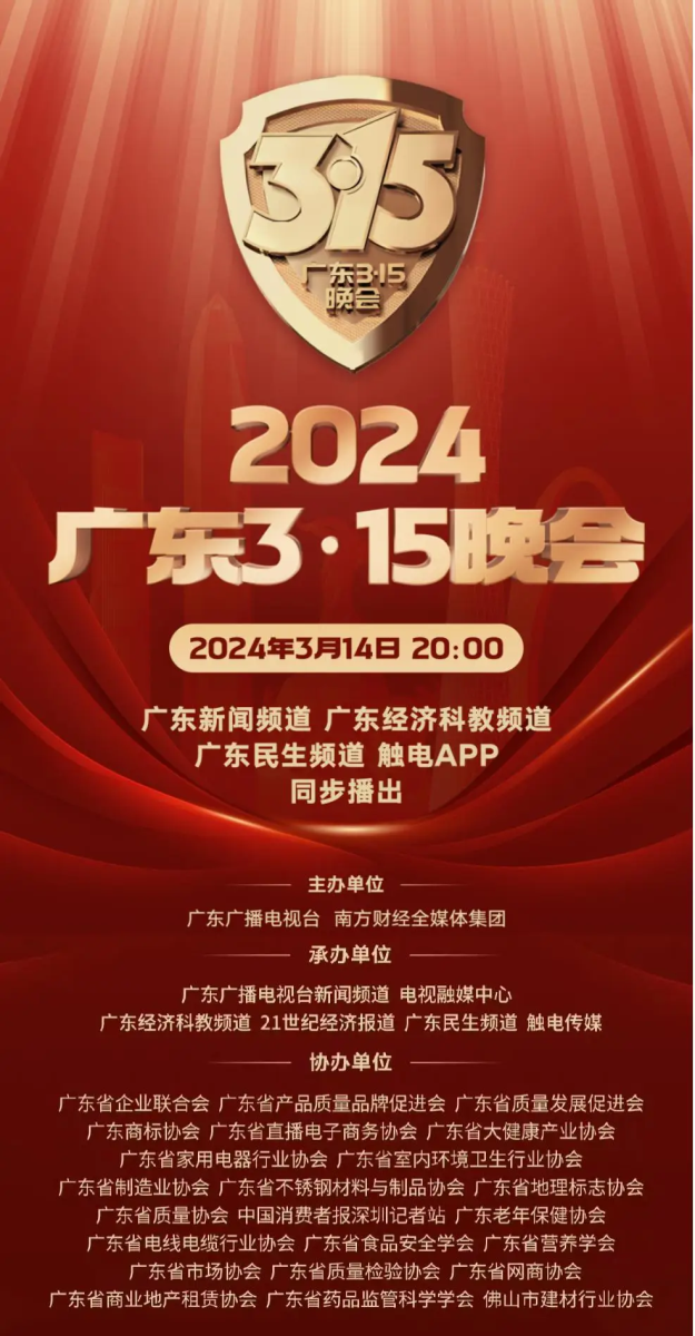 由广东广播电视台、南方财经全媒体集团联合主办的2024“广东3•15晚会”将于3月14日20:00播出。